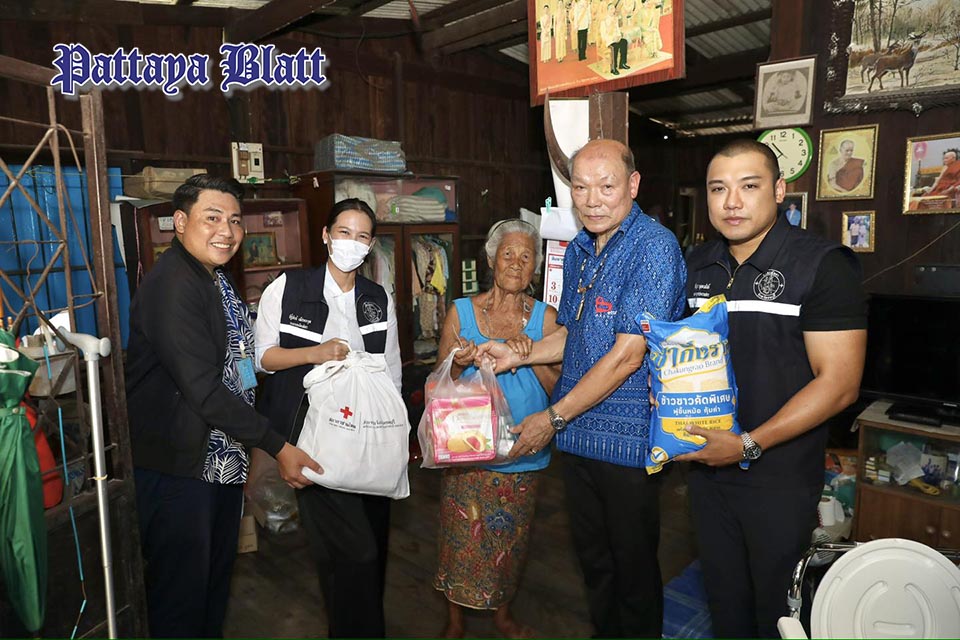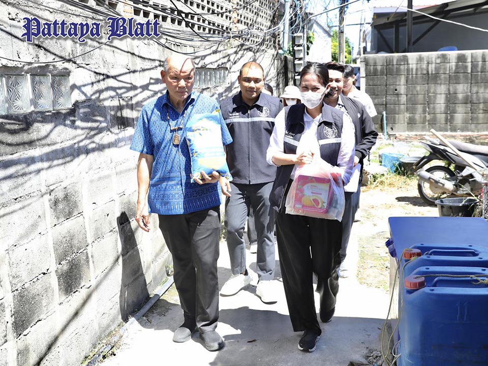 Stellvertretender Bürgermeister Thitiphun Petchtrakul, Stadtratsvorsitzender Banlue Kullavanich, Ratsmitglieder sowie Mitarbeiter des Sozialamts der Stadt Pattaya nahmen persönlich an der Verteilung teil und übergaben Hilfspakete an drei Anwohner.