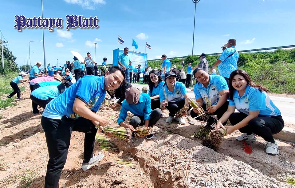 PATTAYA, Thailand – Die Gemeinde Nongprue organisierte eine Gemeinschaftsaktion zur Pflanzung von Vetiver-Gras zu Ehren Ihrer Majestät Königin Sirikit, der Königinmutter, anlässlich ihres Geburtstages am 12. August und des thailändischen Muttertags.