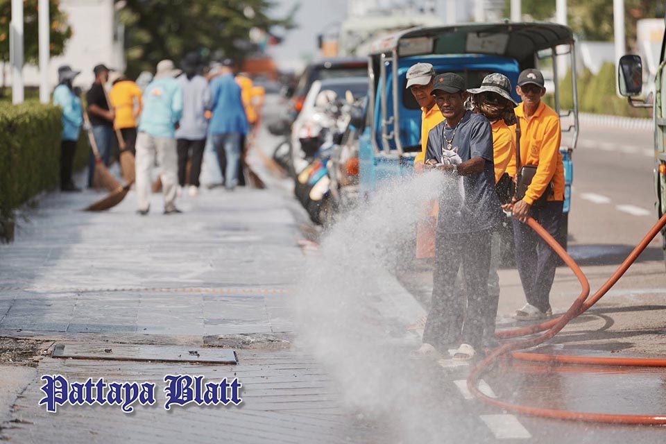 PATTAYA, Thailand – Pattaya hat am Donnerstagmorgen (4. Dezember) seine Maßnahmen gegen die zunehmende Belastung durch gesundheitsgefährdende PM-2.5-Partikel deutlich intensiviert. Bürgermeister Poramet Ngampichet und Vizebürgermeister Manot Nongyai führten persönlich eine groß angelegte Reinigungsaktion entlang der North Pattaya Road an – ein sichtbares Signal für die verschärfte Reaktion der Stadt auf die in den vergangenen Tagen stark gesunkene Luftqualität.
