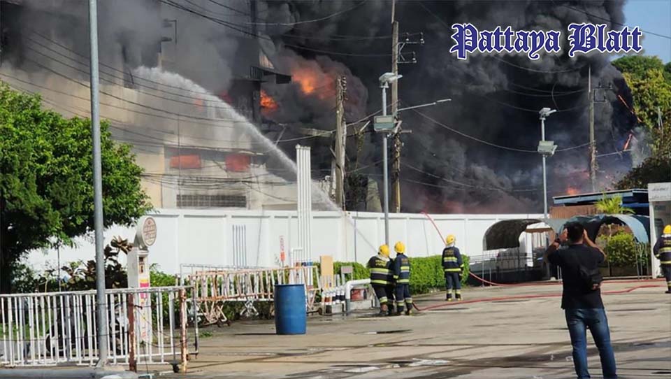 PATTAYA, Thailand – Erneut herrschte Panik in Rayong, als am Freitagmorgen (3. Oktober) ein verheerendes Feuer in einem Geschäft für Motoröl und landwirtschaftliche Geräte an der Sukhumvit Road, Nakhon Rayong 29, ausbrach. Über zehn Feuerwehrfahrzeuge wurden mobilisiert, während dichte schwarze Rauchwolken weithin sichtbar in den Himmel stiegen.