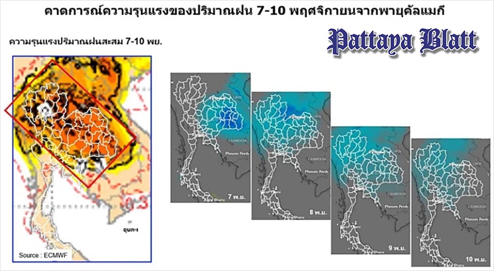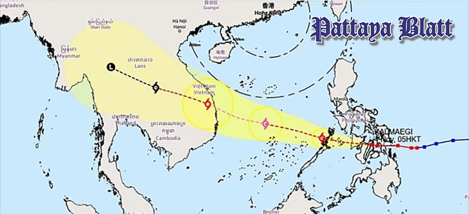 PATTAYA, Thailand – Assoz. Prof. Dr. Seri Supharathit, Direktor des Climate Change and Disaster Center an der Rangsit-Universität und Vizepräsident der National Disaster Warning Foundation, veröffentlichte am Morgen des 5. November 2025 auf Facebook eine Warnung über die Auswirkungen des Taifuns Kalmaegi auf Thailand. Er rief die Bevölkerung auf, vom 7. bis 10. November höchste Alarmbereitschaft zu bewahren.
