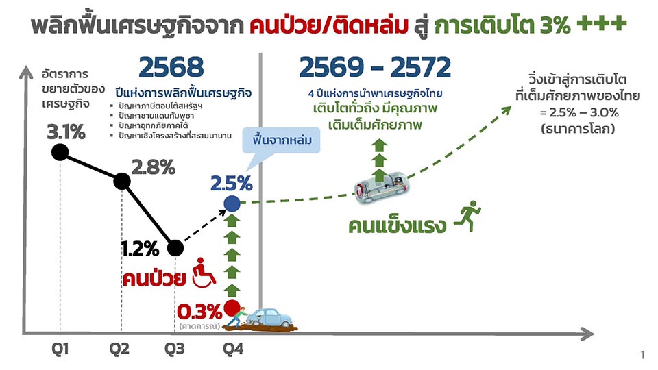 Eine offizielle Wirtschaftsgrafik zeigt den Tiefpunkt der thailändischen Wirtschaft im Jahr 2025 und den beginnenden Aufwärtstrend, der Erwartungen an stärkeres Wachstum im Jahr 2026 untermauert.