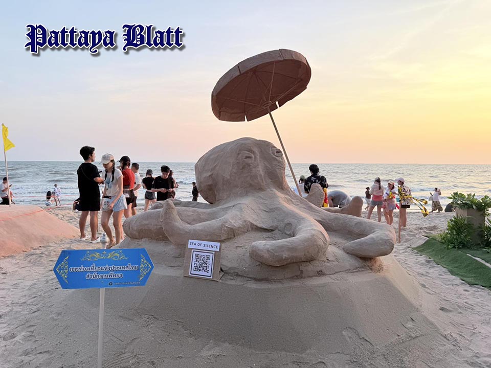 Für das Event 2026 präsentierte das Tourism Authority of Thailand Pattaya Office eine Sandskulptur unter dem Konzept „Sea of Silence“. Die Gestaltung zeigt einen verspielten kleinen Oktopus, inspiriert vom Meer.