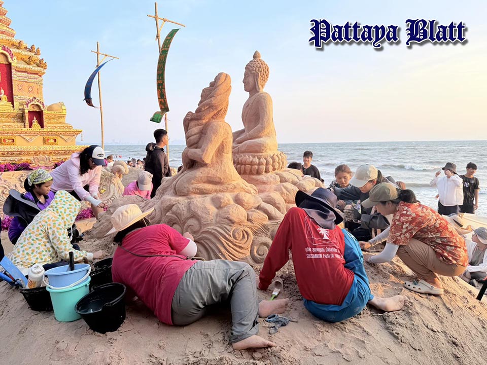 PATTAYA, Thailand – Besucher des Sandpagoden-Festivals Bangsaen Wan Lai Festival wurden in diesem Jahr mit einer Vielzahl farbenfroher und kreativer Sandskulpturen begrüßt. Auch das Tourismusbüro Pattaya beteiligte sich erneut an dieser jährlichen Tradition.