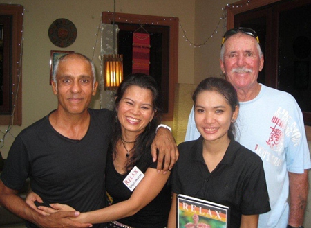 Mukesh Thakker and Bob Neylon pose with the staff at The Relax Bar.