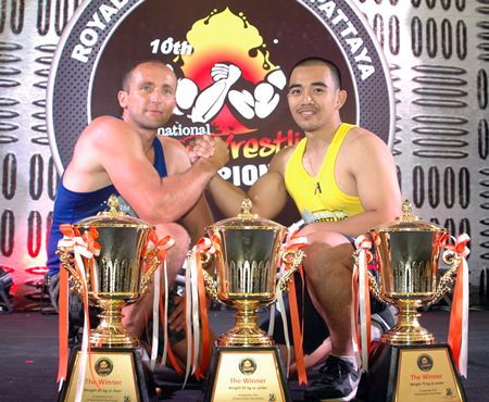 The 10th Pattaya International Arm Wrestling Championship turned into a repeat of last year’s competition, with Latvia’s Arturs Dorohous and Thailand’s Suthiwas Kohsamut winning the top prizes on offer.