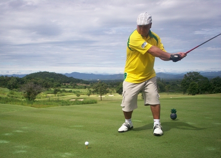 The prospects for golf looked gloomy as we had breakfast at The Ranch, with the remnants of tropical storm Gaemi passing over Pattaya, producing grey skies and drizzling rain. Several regulars were deterred by the weather, but a quick call to the course confirmed they were open and the small group of “die-hards” set off to face the worst the weather could offer.