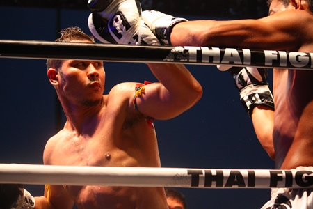 Minister of Culture, Sonthaya Kunplome, officially opened the contest at 5.30 p.m. and amidst a fanfare of thumping music and flashing disco lights he was swiftly followed into the spotlight by the first two combatants of the evening, Thailand’s Peemai Jitmuangong and Frenchman Yacine Darkrim, fighting in the 72kg division.