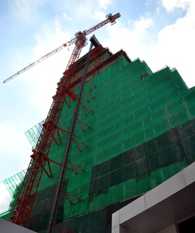A topping-off ceremony took place at the Southpoint condominium on October 10 as construction work on the 30-storey Residence tower was completed and celebrated with a ceremony under a scorching sun, while down below on the 15th floor mechanical & electrical work was continuing apace to keep the project on track for completion in the summer of 2015.