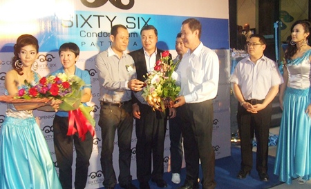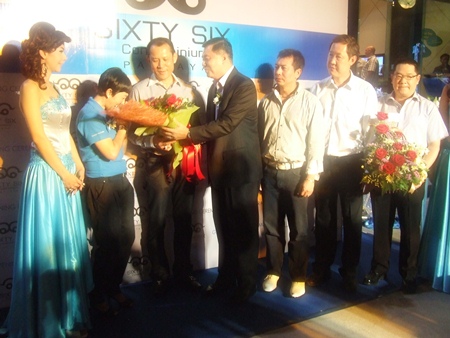 Pattaya Mayor Itthiphol Kunplome helped launch the new Sixty-Six Condominium project at a party attended by political dignitaries and property developers March 26.