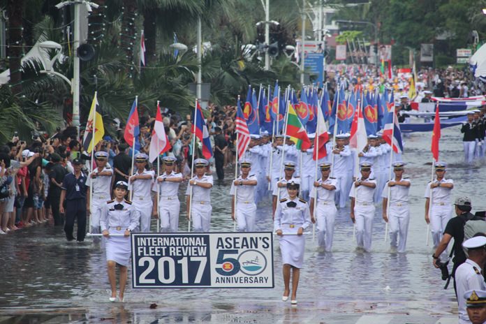 I am sure you must have seen that excellent piece of photo journalism on page 3 of the Pattaya Mail. The one with the visiting navies marching along Beach Road, but Beach Road was awash with water. About mid-calf deep.