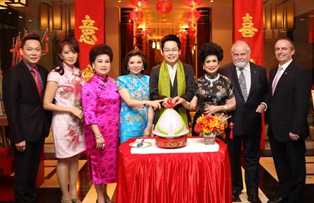 Chinese New Year was celebrated with pomp and circumstance at the Amari Watergate Bangkok recently. Ladies looked comely in their Qípáo Chinese dresses while the men wore their Sunday best. (l-r) Pierre Andre Pelletier, general manager; Philip Sven Sorensen, advisor to the Swedish Executive Scout Board; Jarin Sumanont; Suriyon Sriorathaikul (guest of honour); Suree Ratanahirunya; Sunee Wangwanichkul; Nichaya Chaivisuth, Director of Communications & PR and Khajohnsak Ngiampaisal, Director of Sales & Marketing.