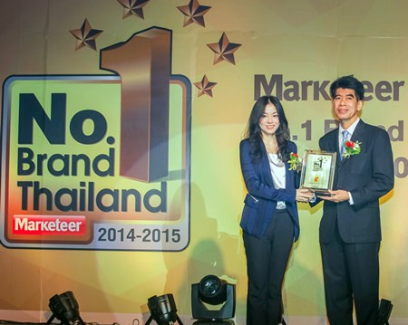 Warunee Kitjaroenpoonsin, Director of Corporate Affairs, Big C Supercenter PCL, received “Thailand’s Most Favorite Hypermarket”’ award from Wichchakorn Chandrasiri, Senior Director of the Department of International Trade Promotion, after having been selected as the most popular hypermarket for the 4th consecutive year in the “Marketeer No. 1 Brand Thailand 2014-2015” survey. Marketeer Magazine, in cooperation with Video Research International (Thailand) Limited, has conducted a customer brand satisfaction survey throughout Thailand, in which 4,000 males and females, aged 12-59 years old, were randomly selected from every part of Thailand to participate in the survey.