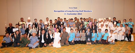 General Manager Chatchawal Supachayanont (seated centre middle row), leads the list of over one hundred long-serving staff members who have served and worked for Dusit Thani Pattaya for more than 15 years. Chatchawal, who has been the hotel’s general manager for twenty years, was among those who were given honour and recognition during a simple ceremony held at the Napalai Convention Hall recently. The staff expressed thanks and appreciation to the management for believing in them and their contribution over the years. They also shared some of the highlights of their nostalgia since the first year they joined when Dusit Thani Pattaya was still called Dusit Resort, Pattaya. The hotel was rebranded in 2007 following the rollout of Dusit International.