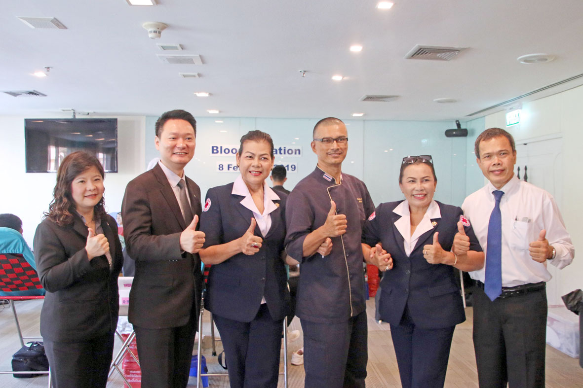 Blood plays a vital role in saving human lives and therefore it is vital that the supply of blood in hospitals must never run out. To this end the management of the Dusit Thani Pattaya, led by EAM Larry Choi (2nd left), Executive Chef B. Pathmanathan Balagangdaram (3rd right), and Pramot Sotana (right), Director of Rooms, organised the first of many blood donation drives for 2019 with the cooperation of the Thai Red Cross Society recently.