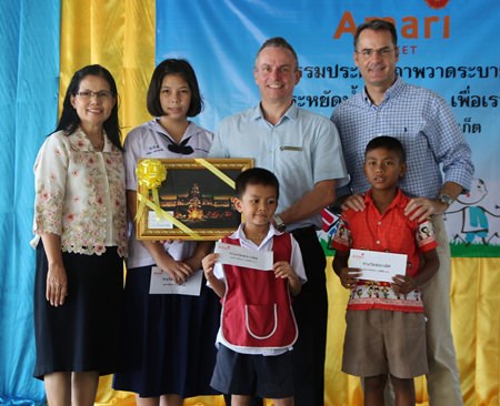 Pierre-Andre Pelletier (3rd left), Vice President and Area General Manager, South Thailand, together with Richard Margo (right), Hotel Manager of Amari Phuket, visited Baan Kalim School recently to grant scholarships to the students who won the ‘Water Conservation, for the World and for Us’ themed colouring competition. The competition was held to raise awareness of water conservation amongst students.
