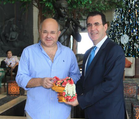 Antonello Passa, GM of the Royal Cliff Hotels Group (right), greets His Excellency Ismail Ahmed Khairat (left), Ambassador Extraordinary and Plenipotentiary of the Arab Republic of Egypt to the Kingdom of Thailand who was on holiday at the resort recently.