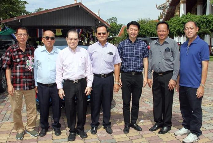 Pattaya Mayor Sonthaya Kunplome, together with Itthiphol Kunplome, assistant to the minister of Tourism and Sports, held a merit making ceremony to mark the 81st birthday of their father Somchai Kunplome (Kamnan Poh) at Wat Chaeng Charoen Don in Chonburi recently. In attendance were former Deputy Minister of Health Santsak Ngampichet, Deputy Mayor Poramet Ngampichet, Deputy Chairman of the Provincial Administration Organisation Pantsak Ketwatha, former MP of Chiang Mai Surapol Kiatchaiyakarn and Deputy Mayor Ronakit Ekasing.