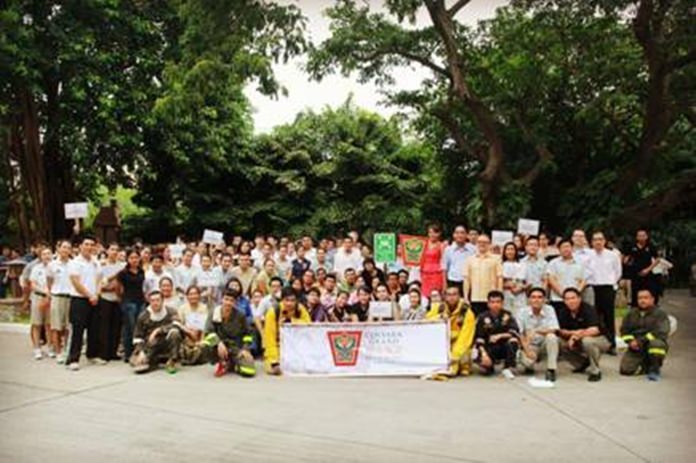 Centara Grand Mirage Beach Resort Pattaya, led by General Manager Andre Brulhart (6th right, 2nd row), along with hotel management and staff, recently organized their “Annual Fire Drill and Fire Evacuation Practice Training 2016” to make sure high standards of safety awareness and highly trained personnel are maintained to be ready to deal promptly with fire emergency situations. The event was successful with good cooperation from the hotel staff of all departments. Suraphol Swadivichien (7th right, 2nd row), head of Pattaya Disaster Prevention & Mitigation and his team directed this event.