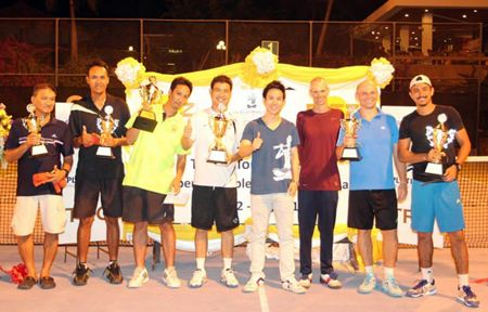 The Fitz Club – Racquets, Health & Fitness sponsored 3rd Fitz Club Tennis Tournament at the Royal Cliff Hotels Group. The ever-popular tennis tournament was another massive success with tennis players of all ages and skill levels participating in the fun-filled two day event. Executive Director of the Royal Cliff Hotels Group, Vitanart Vathanakul (fourth from right), poses with the winners. Singles Winner: Sylvester Alamda, Singles Runner-up: Daniel Rajsky, Doubles Winner: Sul Ukapatsakul and Likit Wongsarot, and Doubles Runner-Up, Amnart Srila and Seubsak Wongsurin at the Fitz Club – Racquets, Health & Fitness.