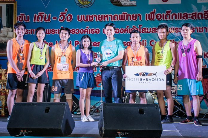 Former Chonburi Member of Parliament Poramet Ngampichet (4thight) congratulated the Hotel Baraquda Pattaya MGallery by Sofitel team for finishing second runner up in the Pattaya “Walk – Run for Charity 2016” which recently took place along Pattaya Beach. The event was organized by the YWCA Bangkok Pattaya branch and sponsored by the Tourism Authority of Thailand and Pattaya City Hall. Part of the money raised from this event will be added to the budget of constructing new buildings for poor schools, constructing a building for the Glory Hut Foundation for people who have HIV, and supporting the water filtration machine project of Sirijaroenwat Forest.
