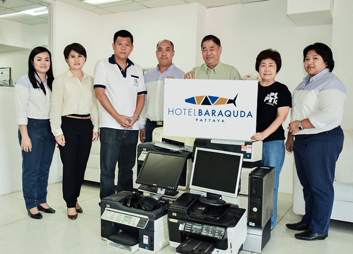 Hotel Baraquda Pattaya MGallery by Sofitel recognizes the importance of eco-friendly waste management of electronic materials and have therefore donated used computers and printers to the Redemptorist Vocational School for the Disabled at the Father Ray Foundation in Pattaya. Hotel Baraquda owner’s representative Wong Swee Huat (3rd right) and Hotel Manager Wanithchaya Kietdamrongwong (2nd left) along with the hotel’s management team recently presented the items to Ajima Chavalit-Thamrong (2nd right), from the Father Ray Foundation. These items will be used as learning aids for disabled students to practice their skills. The donation forms part of the hotel’s CSR project and this extremely worthwhile cause gives something back to the community and those less fortunate than ourselves.
