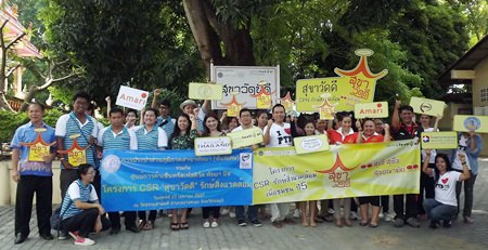 Central Festival Pattaya Beach, together with Pattaya City Hall, the Water Works Department (Pattaya Region), Bangkok Hospital Pattaya and the Amari Pattaya jointly took part in the ‘Sukhawatdee’ CPN environmental project whereby they conducted repairs at Thamsamakhee Temple. Attending the activity were Krisana Maprang-on, Assistant Manager of the Building Department, Mongkol Sirilekh, Systems Manager for Central Festival Pattaya Beach, and Sukanpat Homchuen, Assistant Manager of the Amari Pattaya.