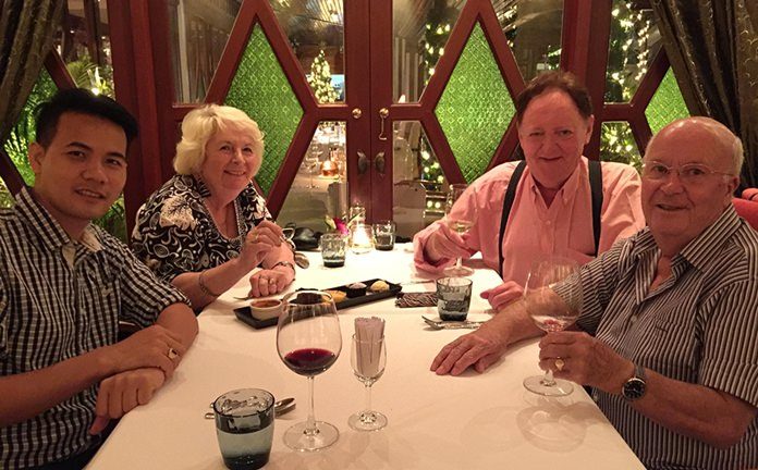 Around Pattaya & Thailand Low key birthday dinner for local expat December 23, 2016 0 1454 Share on Facebook Tweet on Twitter tweet Graham Smith (right) celebrated his 75th birthday in style at Café Des Amis recently. He was joined by his wife of 52 years, Foo (second left), Pasit Foobunma (left) and Allan Riddell (second right).
