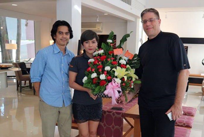Around Pattaya & Thailand New Showroom for Euro Design Furniture July 21, 2017 0 4096 Share on Facebook Tweet on Twitter tweet Jacques Senior Lefebvre (right), Operations Director at Euro Design Furniture receives a gift from his customers at the grand opening of the new Euro Design showroom on Thepprasit Road.