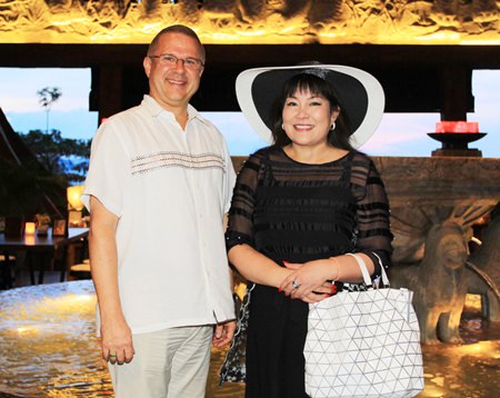 Andre Brulhart (left), GM of Centara Grand Mirage Beach Resort Pattaya, greets Eing Eing (right), Thailand’s well-known TV show host during her summer vacation at the resort.