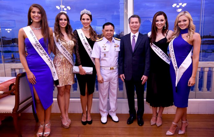 Thai Airways International welcomed Miss World Australia 2016 and runner up beauties at the dinner reception hosted by the Tourism Authority of Thailand (TAT) that took place at the Royal Thai Naval Institute Officers Club along the Chao Phraya River. The Miss World Australia 2016 beauties are in Thailand to take part in the TAT’s Woman’s Journey Thailand campaign for August 2016, designating the month as a ‘month for women travelers’ to mark Her Majesty Queen Sirikit’s 84th birthday anniversary. (l-r) Anna McEvoy, 4th Runner up; Esma Voloder, 1st Runner up; Madeline Cowe, Miss World Australia 2016; Vice Admiral Jumpol Lumpiganon, Deputy Chief of Staff Royal Thai Navy; Charamporn Jotikasthira, THAI President, Amy Lee Dixon, 2nd Runner up; and Tasha Ross, 3rd Runner up.
