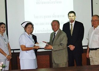The German Benevolent Society of Thailand donated 50,000 baht to Banglamung Hospital for the purchase of new equipment. Chumpol...