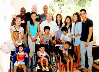 Chatchawal Supachayanont (center), general manager of Dusit Thani Pattaya welcomes children from Camillian Home Lat Krabang and their chaperones to the hotel for...