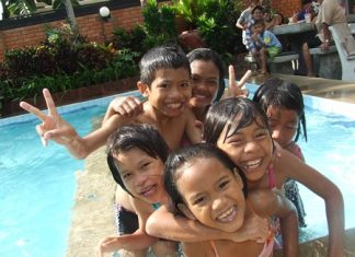 More than 80 children from the Bang Jing Jai orphanage hit the pool at the Haven Hotel, which is assisting the shelter in...