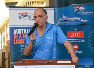 Mark Fifield, general manager of Coral Expeditions, travelled from Cairns, Queensland, to talk about Australia’s Great Barrier Reef at the August 23 meeting of...