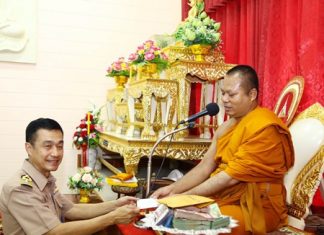 Three Sattahip temples raised nearly 300,000 baht for new rescue equipment for Sattahip’s Sawang Rojthammasathan Foundation. Pra Kru Visarotsuthakorn, chief abbot in Plutaluang Sub-district...