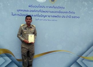 Chonburi Deputy Gov. Chawalit Saeng-Uthai has been recognized for his career work fighting drugs.