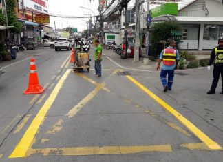 The Pattaya Traffic Department made driving a bit clearer by painting new lane lines on streets connecting to Soi Khao Talo.