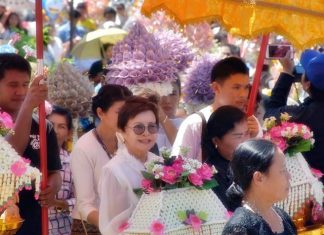 The Diana Group and Pattaya Press Association donated candles to three temples for Buddhist Lent.