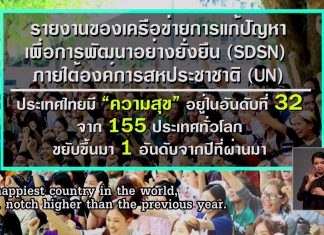 BANGKOK,(NNT) - The Sustainable Development Solutions Network (SDSN) has recently released its survey ranking Thailand 32nd among the happiest countries in the world.