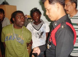 A Nigerian man who stuck a bag of methamphetamines up his bum was one of two people arrested by Banglamung police for alleged...