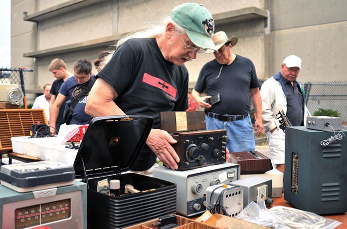 Chuck Ochs has been a regular seller since 1991, stacking his table high with vintage radios and electronic testing equipment. His rarest item up for sale last week was a Crosley Model 51 radio from 1921, going for $100.