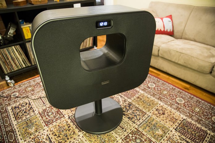 Separate knurled knobs for volume, bass and treble are recessed into the speaker and pop up at the touch of a finger. The Stockwell also has an input port for devices without Bluetooth.