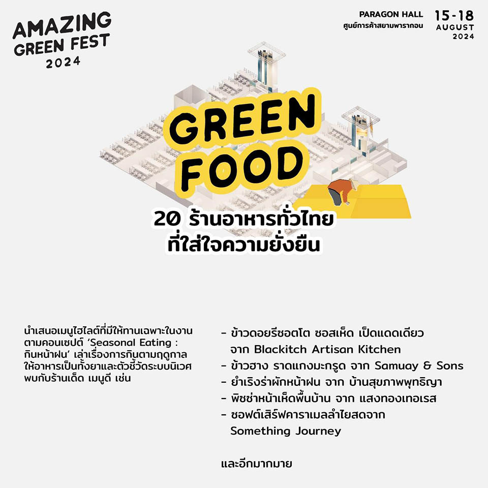 -Green Food:  A marketplace for food made from ingredients sourced locally in Thailand and presented by restaurants and hotels with commitment to sustainability.