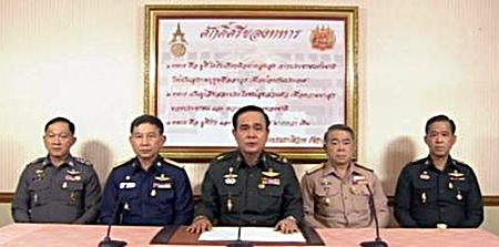 Army Chief Prayuth made the announcement in a television broadcast after a seven-partite meeting aimed at finding a solution to six months of anti-government protests, had failed.