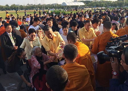 This morning, the governor led senior BMA officials and representatives of the government, private sector and the public to give alms to 189 Buddhist monks.