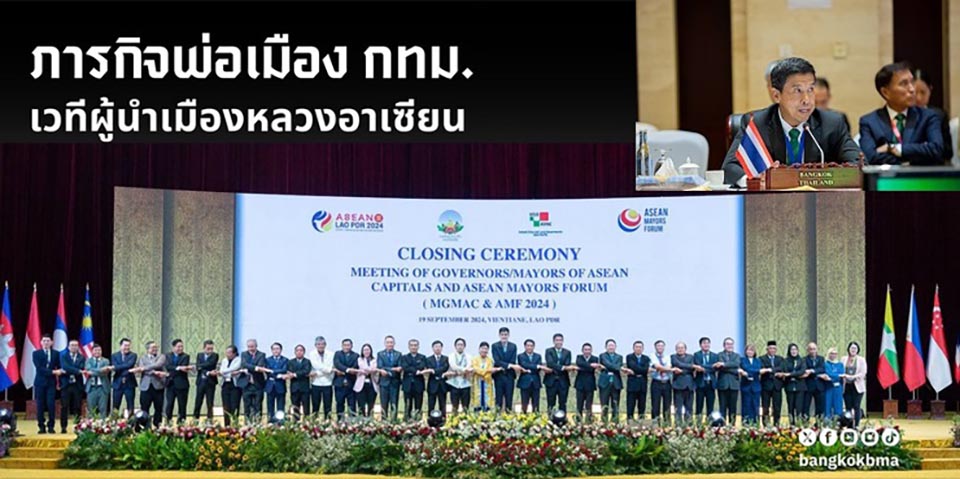 VIENTIANE – Bangkok Governor Chadchart Sittipunt participated in the Meeting of Governors/Mayors of ASEAN Capitals (MGMAC 2024) and the ASEAN Mayors Forum (AMF) held in Vientiane, Laos, from 18-19 September 2024. Governor Chadchart joined discussions on the theme of “Enhancing Connectivity and Resilience in Crisis for Sustainable Urban Development in ASEAN.”