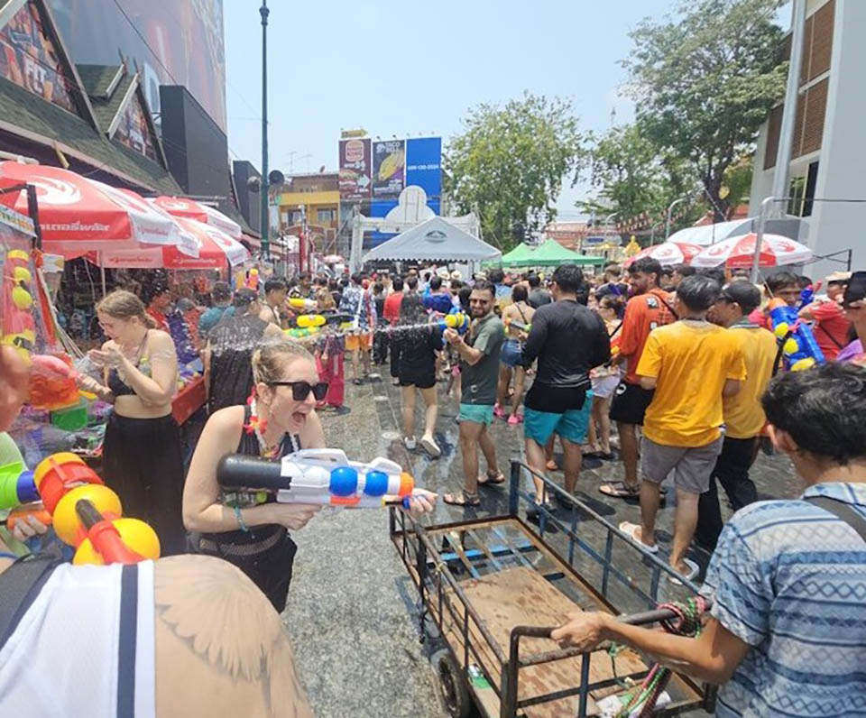 Pol. Col. Sanong Saengmanee, Superintendent of Chanasongkram Police Station, led a thorough inspection of various checkpoints to ensure safety and security throughout the area. Roads were closed off, and stringent measures were implemented to direct the flow of both local revelers and international tourists, guaranteeing a safe and enjoyable experience amidst the water splashing revelry.