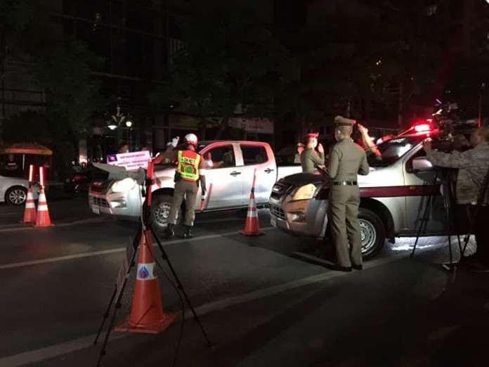 Metropolitan Police Division 5 has setup a new type of alcohol screening checkpoint in front of Thong Lor Police station, in accordance with policy from the Royal Thai Police Chief which is aimed at enhancing transparency and standardizing tests for drunk driving, with the checkpoint to face simulated scenarios from the mundane to resisting motorists.