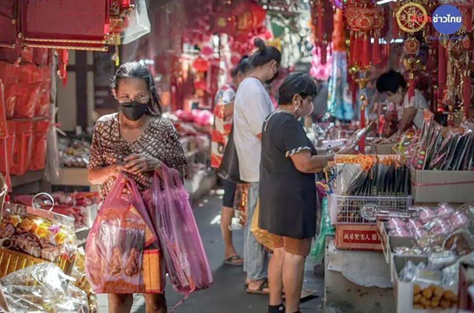 Shoppers of Chinese descent on Friday flock to Yaowarat, Bangkok’s China Town to buy food and other items used in ceremonies to pay respect to ancestors during the Lunar New Year.